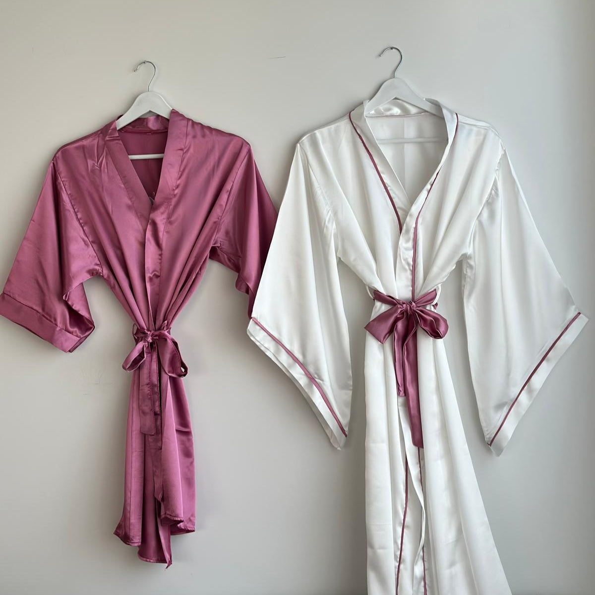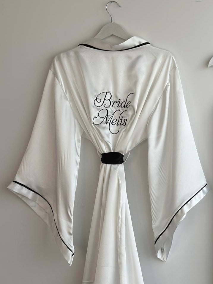 Saten dokusuyla hafif, ipeksi bir his sunar; düğün sabahı hazırlıklarınızda, nedime takımlarında, doğum sonrası veya özel hediyelerde mükemmel bir seçimdir.