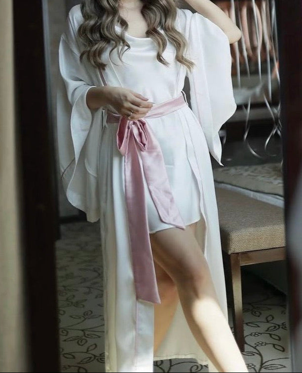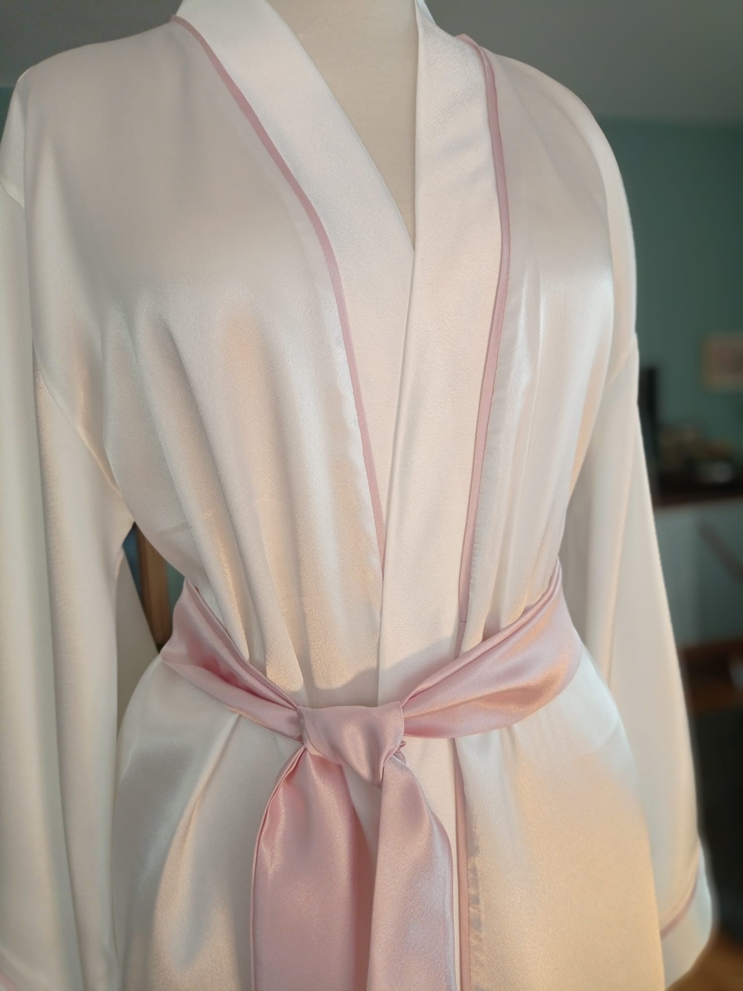 Zarif tasarımı ve ince biyeleriyle öne çıkan kimono biyeli sabahlık, özel günlerinize şıklık ve rahatlık katar.