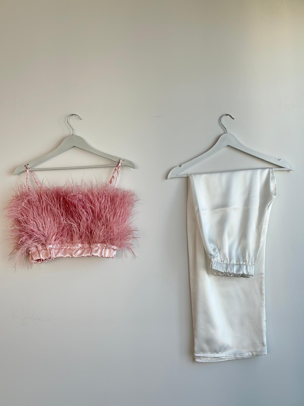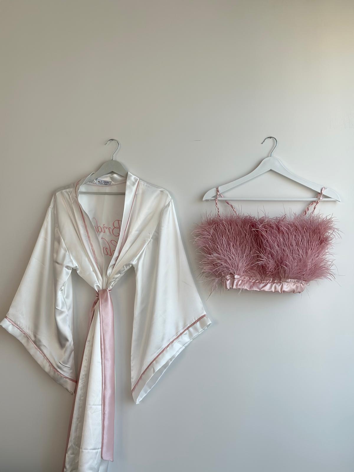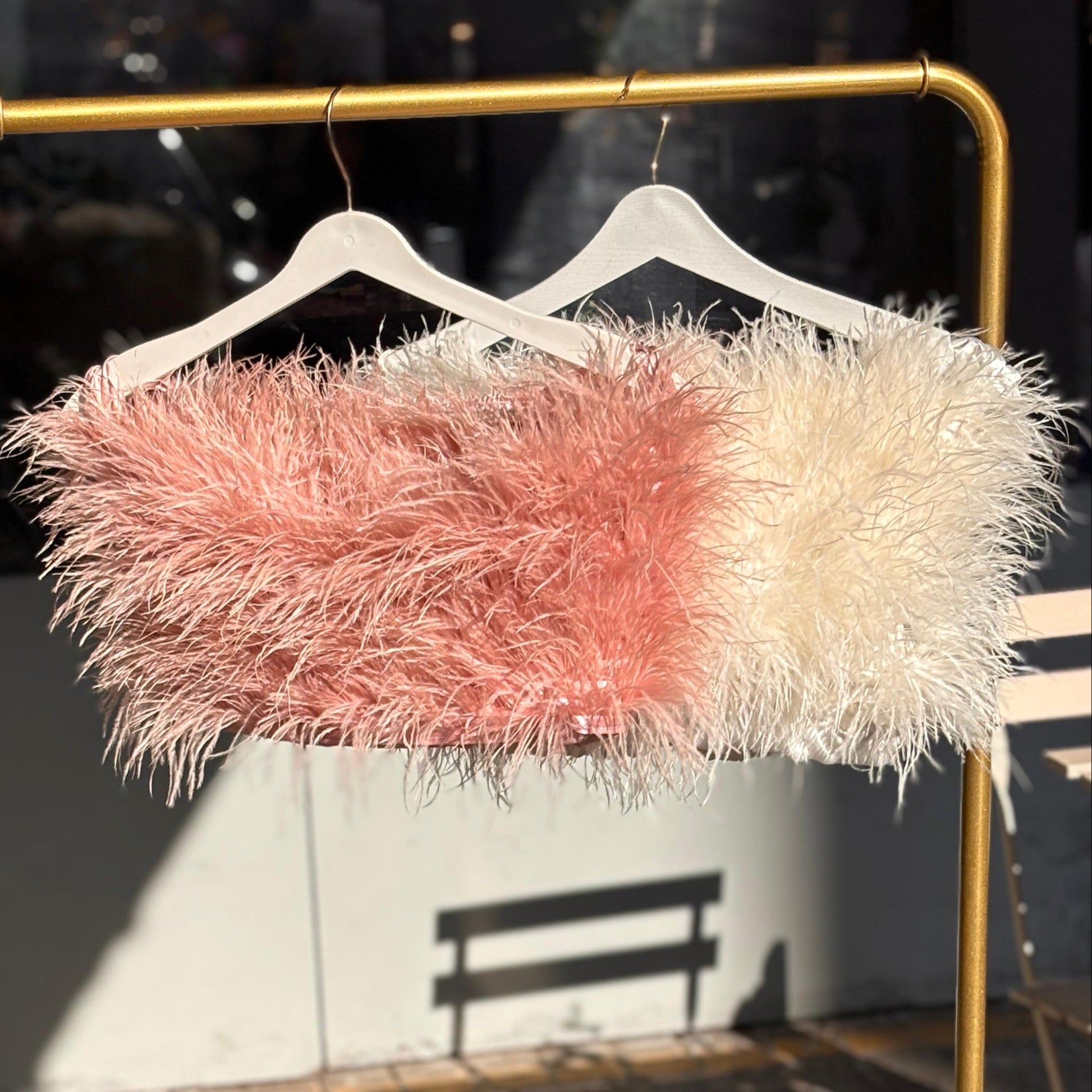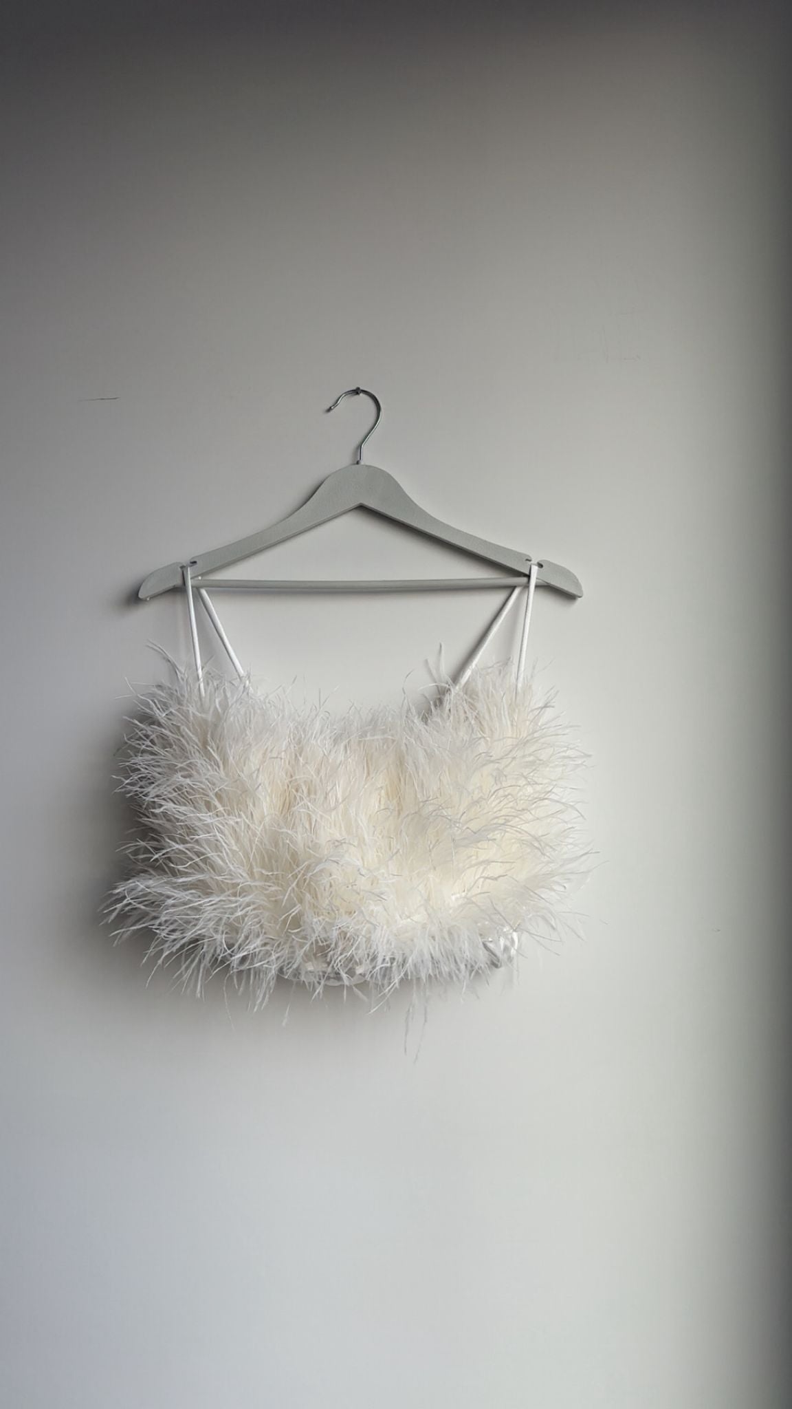 Gelinler için modern ve cesur bir alternatif: Deve tüyü detaylı crop üst, şifon şort ya da pantolonla kombinlenerek düğün sonrası kutlamalarda ve after party’de özgür ve zarif bir görünüm sağlar.